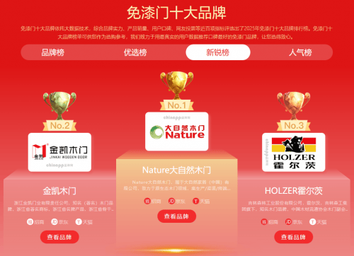 2025年开年,浙江金凯门业有限负担公司的金凯木门品牌入选“品牌网”评选的“2025年免漆门新锐榜十大品牌排行榜”。