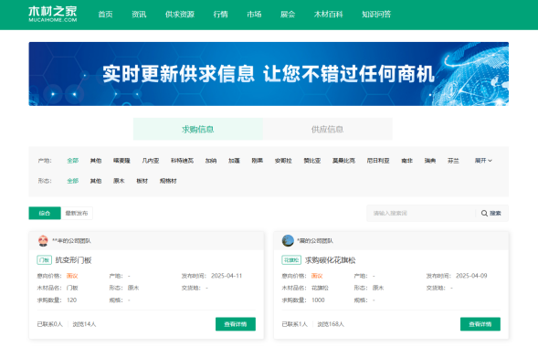 “木柴之家”通过高效的音讯收罗机制,或许实时、确实地将最新的木柴供应、需求及代价变化等音讯露出给用户,助助用户急速获取枢纽资讯,裁减音讯错误称导致的决议误差,极大地缩短了音讯获取的年光本钱,提升了来往成果。