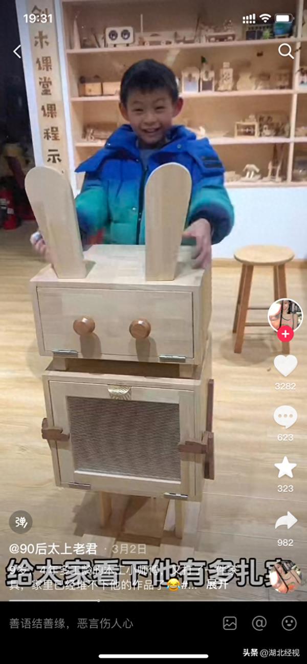 指日,一则“9岁男孩‘汪师傅’正在家创制家具”的视频火了。小男孩的妈妈正在视频中称,“家里都疾放不下他创制的家具了”。有网友正在评论区戏弄,“上链接吧,汪师傅”。