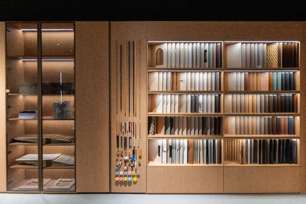 ——定制区没有效“大墙面”映现柜体组合,而是回归到消费者的确的“家”的场景,去塑制定成品正在“家”里的合理名望。