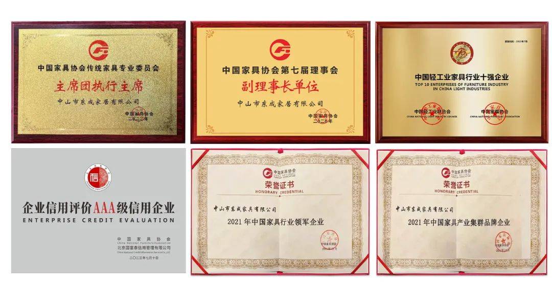 中邦度具协会接连授予“中邦度具协会副理事长单元、中邦度具协会古代家具专业委员会主席团施行主席单元,中邦轻工业家具行业十强企业,中邦度具行业领军企业、企业信用评判AAA级信用企业……”每一项荣幸的加冕,都是对东成红木高质料兴盛功劳的至高认同。